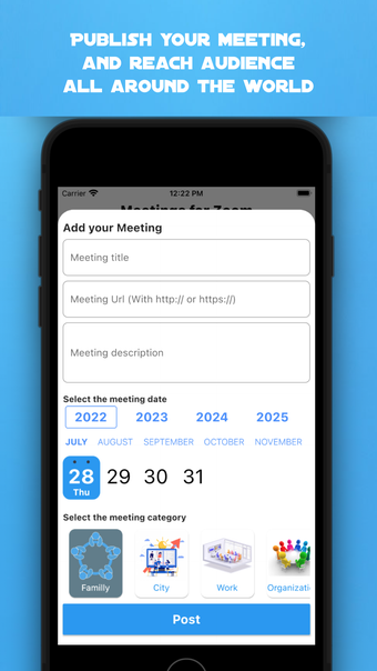 Appen integrerar smidigt med kalendern för att säkerställa att inga viktiga möten missas, och det är möjligt att söka efter möten utifrån olika kategorier som Familj, Utbildning och Träning. Med funktioner för social delning kan användare enkelt dela intressanta möten med vänner och på sociala medier. Utan krav på inloggning erbjuder Meet Hub en användarvänlig upplevelse för alla som vill engagera sig i virtuella möten och utbildningar.